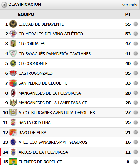 Clasificación de la Liga Caja Rural antes del partido: